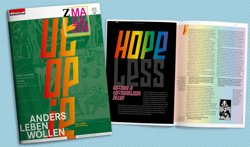In der letzten Ausgabe des Z-Magazins mit Gudrun Goldmann als Chefredakteurin – bevor sie sich in den Ruhestand verabschiedet – geht es um Utopien und Hoffnung angesichts von Klimawandel und einer Erosion demokratischer Strukturen weltweit.